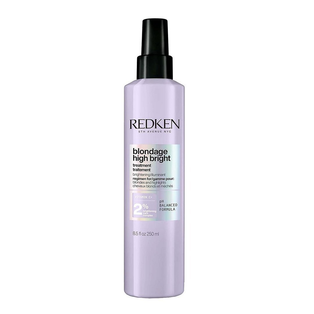 La línea Blondage High Bright de Redken es un sistema de cuidado capilar avanzado que revitaliza el rubio apagado y potencia su luminosidad entre servicios de salón. Con vitamina C y Brightening Care Complex, elimina impurezas y acumulación que opacan el tono, aportando brillo inmediato, suavidad y claridad al cabello rubio.