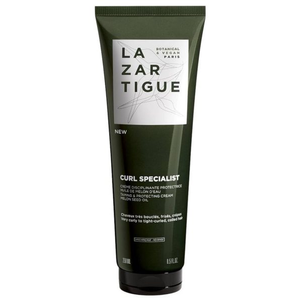 Formulada para cabellos muy rizados, Lazartigue Taming & Protectnutre, desenreda y protege la fibra capilar de los efectos nocivos del calor hasta los 230°C y de los rayos UV. Su fórmula vegana y sin siliconas desenreda instantáneamente el cabello y redefine los rizos sin dejar residuos. El aceite de semilla de melón del desierto de Kalahari nutre e hidrata la fibra capilar.